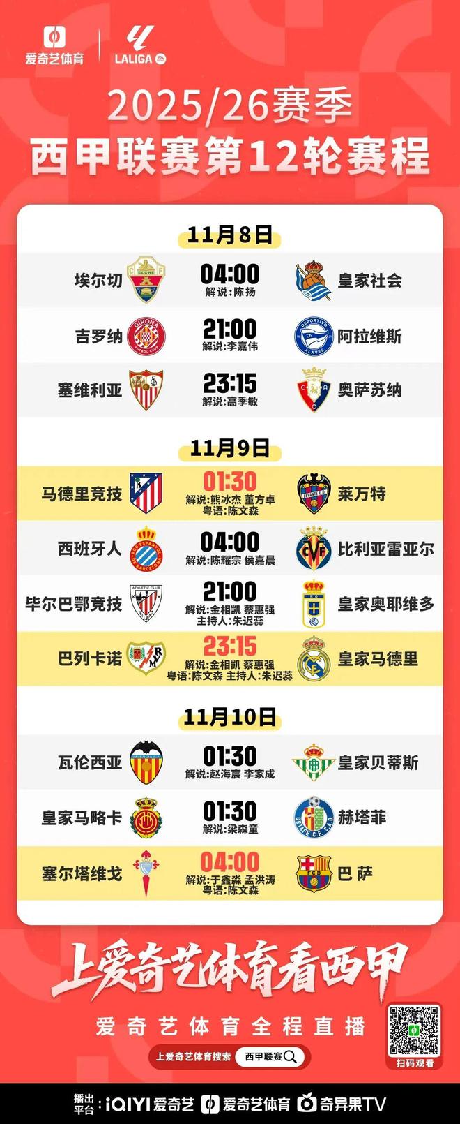 马德里竞技 vs 莱万特 马德里竞技将于 11 月 9 日星期日凌晨 01:30 在主场迎战莱万特。本场比赛将在爱奇艺体育进行直播。上周,马德里竞技队在联赛中首次零封击败塞维利亚队,随后在欧冠联赛中以3-1击败圣吉罗斯联队。球队目前在西甲联赛中排名第四,仅落后领头羊比利亚雷亚尔一分,预计本赛季将重返前三。莱万特今年夏天升入西班牙乙级联赛冠军。最终球队以1-2不敌少一人的塞尔塔队,最终排名第16。马竞对阵莱万特优势明显,但最近几场比赛表现并不是很强。马德里竞技在西甲联赛中对阵莱万特的近四场比赛中取得了2平2负的成绩,没有一胜一负。马德里竞技本赛季主场战绩优于客场战绩,本周在大都会的比赛可能是西蒙尼的优势之一。球员方面,阿根廷双星阿尔瓦雷斯和西蒙尼是马竞锋线的两大支柱。阿尔瓦雷斯在每条线上打进九球,是球队的最佳射手,在过去三场比赛中每场都有进球。小西蒙尼在最后三场比赛中以 5 次助攻领跑全队,并贡献 2 次传球和 1 次射门,每场比赛都获得了全场最佳球员的荣誉。本周两队在欧冠赛场的交锋尤为精彩,周末有望再演一场默契。